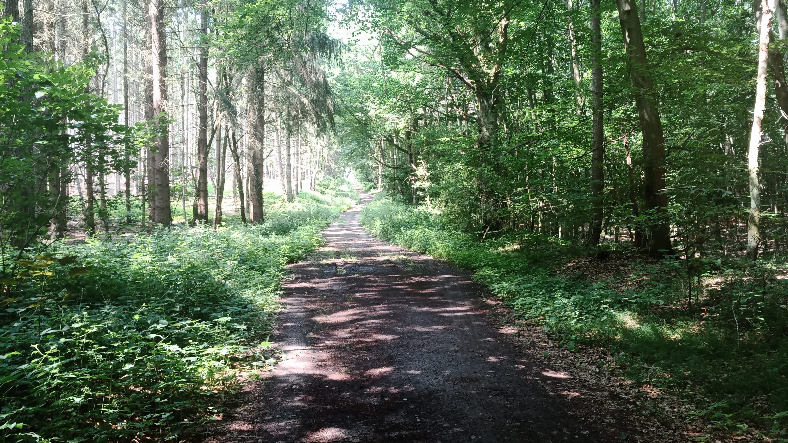 Gestartet bin ich um 8:20 Uhr. Zunächst ging es an der Straße entlang aus Neubukow raus. Nach 1-2 km ging es dann aber durch ein Stück Wald, wo ich auch auf den offiziellen Weg treffen sollte. Waldwege finde ich eigentlich wunderbar: Es gibt viel Schatten und die Luft ist meist sehr frisch. Außerdem gibt es viel fürs Auge, die Bäume und übrigen Pflanzen, die Geräusche von Vögeln und anderen Tieren… Wo wir beim Thema sind: Ein hochfrequentes Summen kam immer wieder in mein Ohr… Mücken!